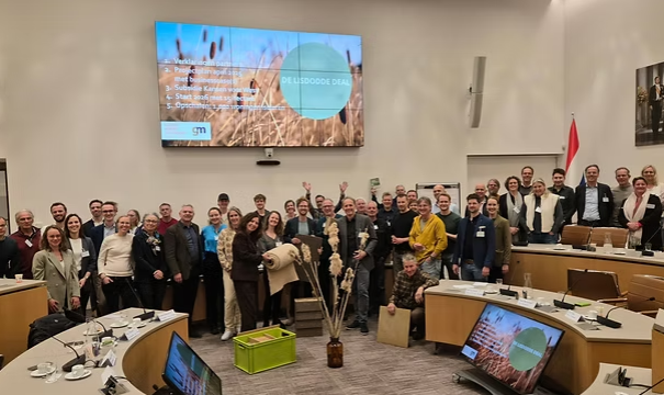 Na twee inspirerende minimasters in 2023 en 2024, waar agrariërs, corporaties, verwerkers, aannemers, gemeente Gooise Meren en de Rabobank elkaar vonden, ontstond een bijzonder idee. Waarom zouden we niet de kracht van de natuur gebruiken om onze huizen te isoleren? Een drukbezochte bijeenkomst in de Raadszaal van Gooise Meren dit voorjaar, leidde tot een diepgaand vooronderzoek dat resulteerde in een projectplan en een businesscase voor een korte biobased keten. Alle ketenpartners hebben onlangs hun volledige commitment uitgesproken voor dit ambitieuze project: de lisdodde deal is gesloten!